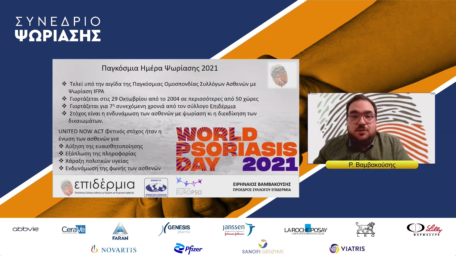 Ο Πανελλήνιος Σύλλογος Ασθενών με Ψωρίαση και Ψωριασική Αρθρίτιδα, Επιδέρμια, συμμετείχε στο Συνέδριο Ψωρίασης «Ψωρίαση και Δερματικά Νοσήματα: εν μέσω πανδημίας ενώνουμε τις δυνάμεις μας», το οποίο έλαβε χώρα στο Εθνικό Ίδρυμα Ερευνών, στις 27 και 28 Νοεμβρίου 2021.