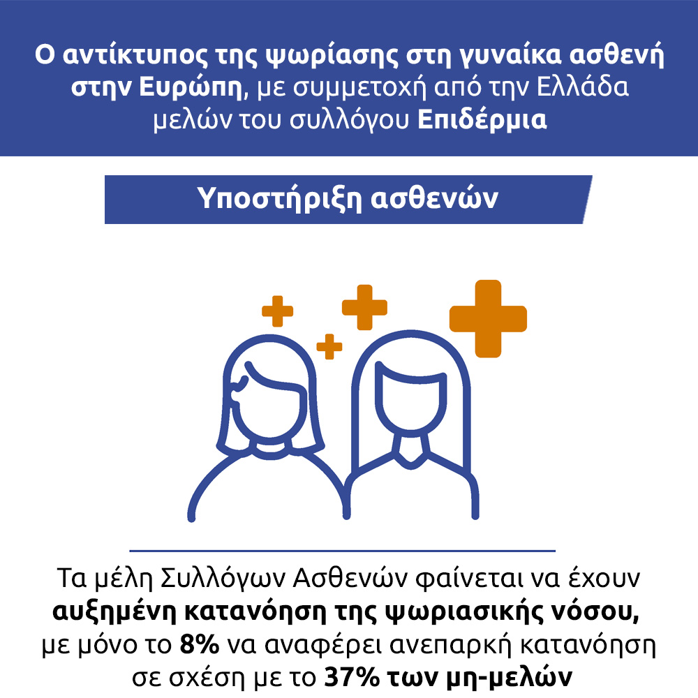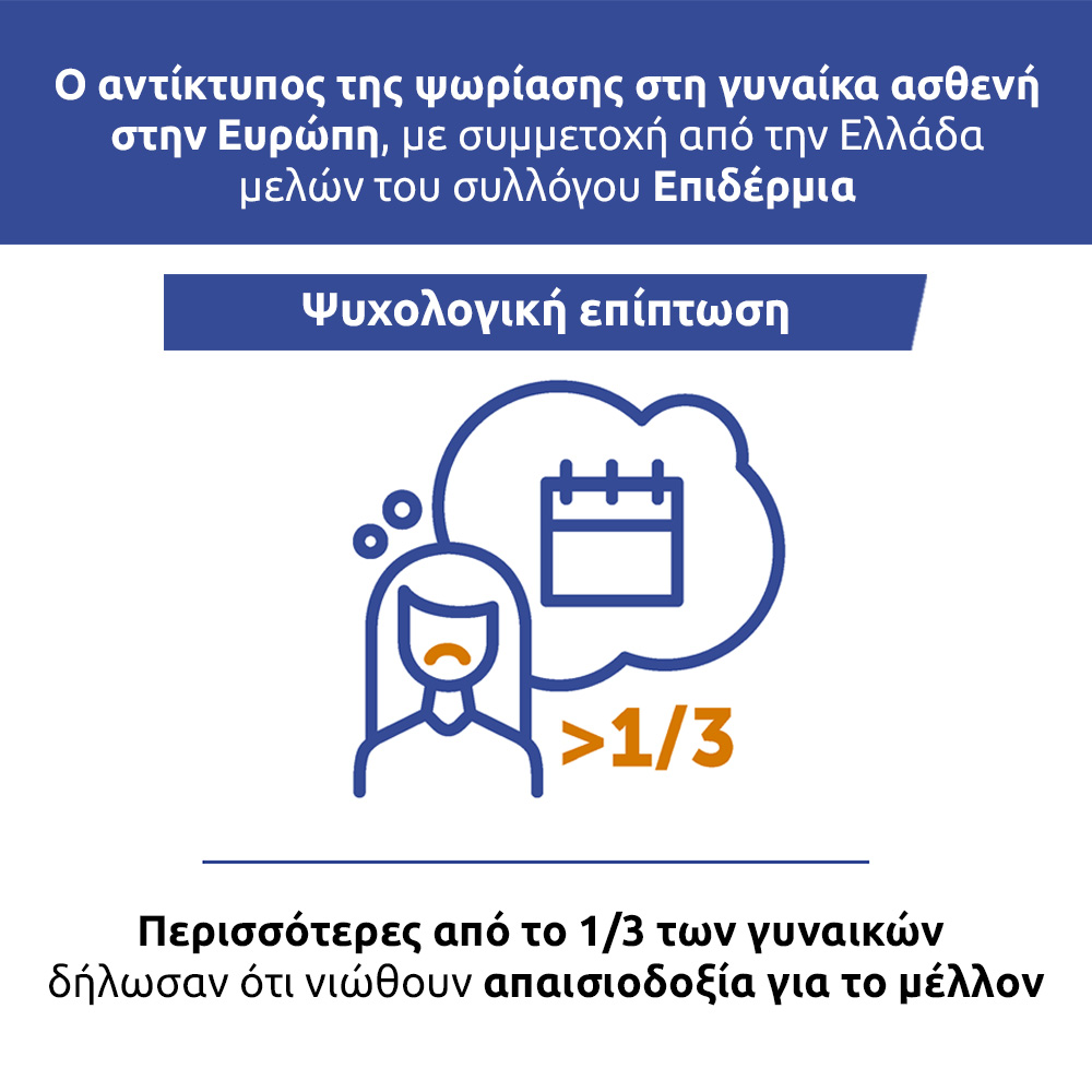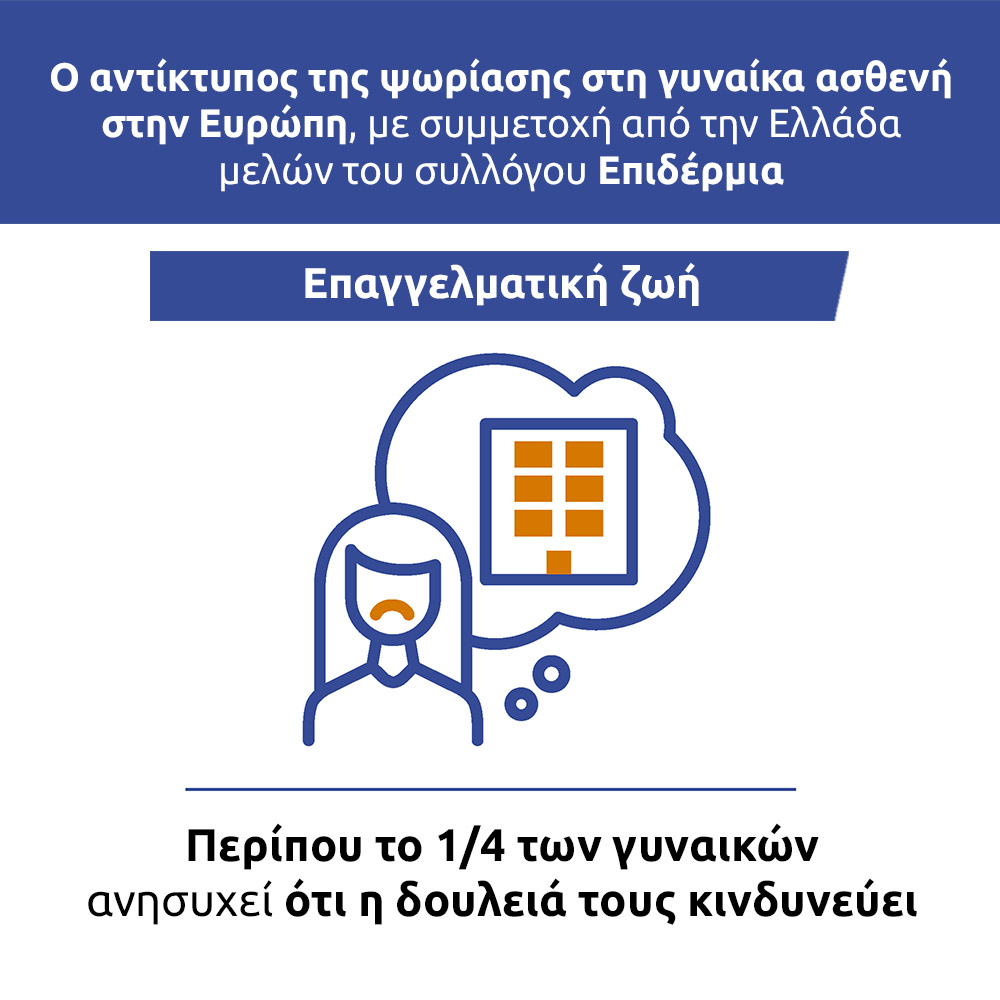 Η πρώιμη έναρξη της ψωριασικής νόσου οδηγεί σε διαγνώσεις και θεραπείες που τυπικά επικαλύπτονται με τα αναπαραγωγικά χρόνια μιας γυναίκας ασθενούς και την έναρξη της επαγγελματικής της καριέρας. Πρόκειται για μία έρευνα ύψιστης σημασίας, η οποία έφερε στην επιφάνεια τις ανεκπλήρωτες ανάγκες των γυναικών που ζουν με την ψωριασική νόσο και εστίασε στον αντίκτυπο της νόσου στον επαγγελματικό τομέα, την ψυχολογία, την κοινωνική ζωή και τον οικογενειακό προγραμματισμό.